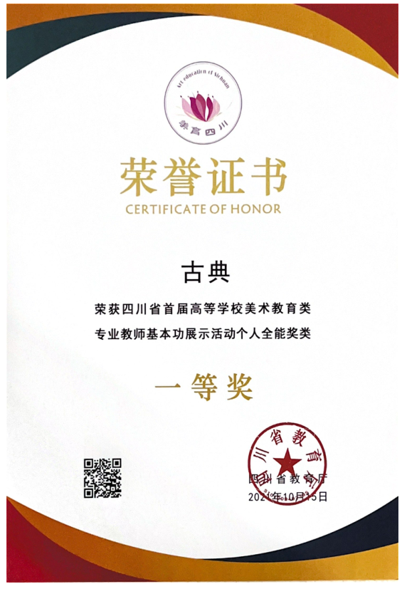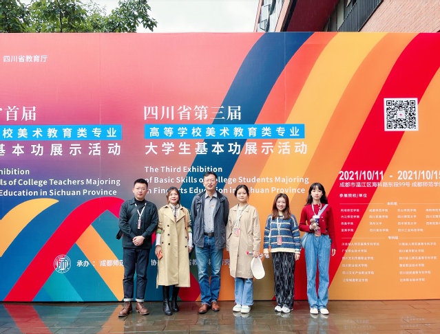 10月11日-15日,四川省首届高等学校美术教育类专业教师基本功展示和四川省第三届高等学校美术教育类专业大学生基本功展示在成都师范学院举行,美术与设计学院师生团队代表我校参展,并在本次赛事中获得了七个一等奖、五个二等奖、一个三等奖以及二个优秀指导教师奖。