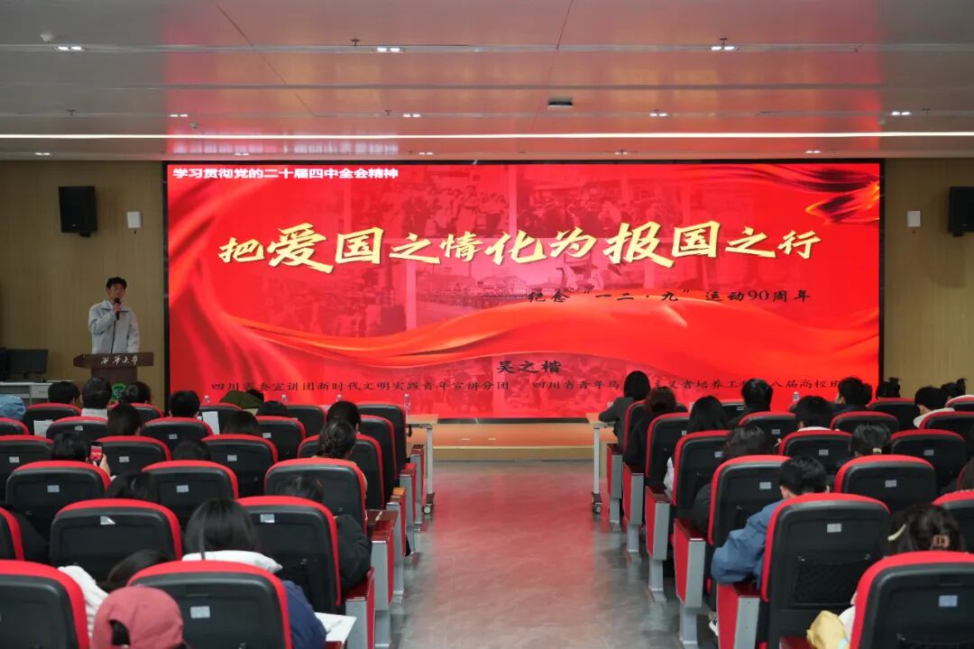 四川省学联驻会主席、省青马班学员吴之楷分享了自己参与社会实践、志愿服务、青马工程的感悟与收获,生动诠释了新时代青年如何以实际行动践行爱国初心。在交流分享环节,来自各学院的学生骨干围绕专业学习、社会实践、创新创业等主题展开热烈讨论。大家结合自身经历,畅谈如何在学习与工作中践行“一二·九”精神。