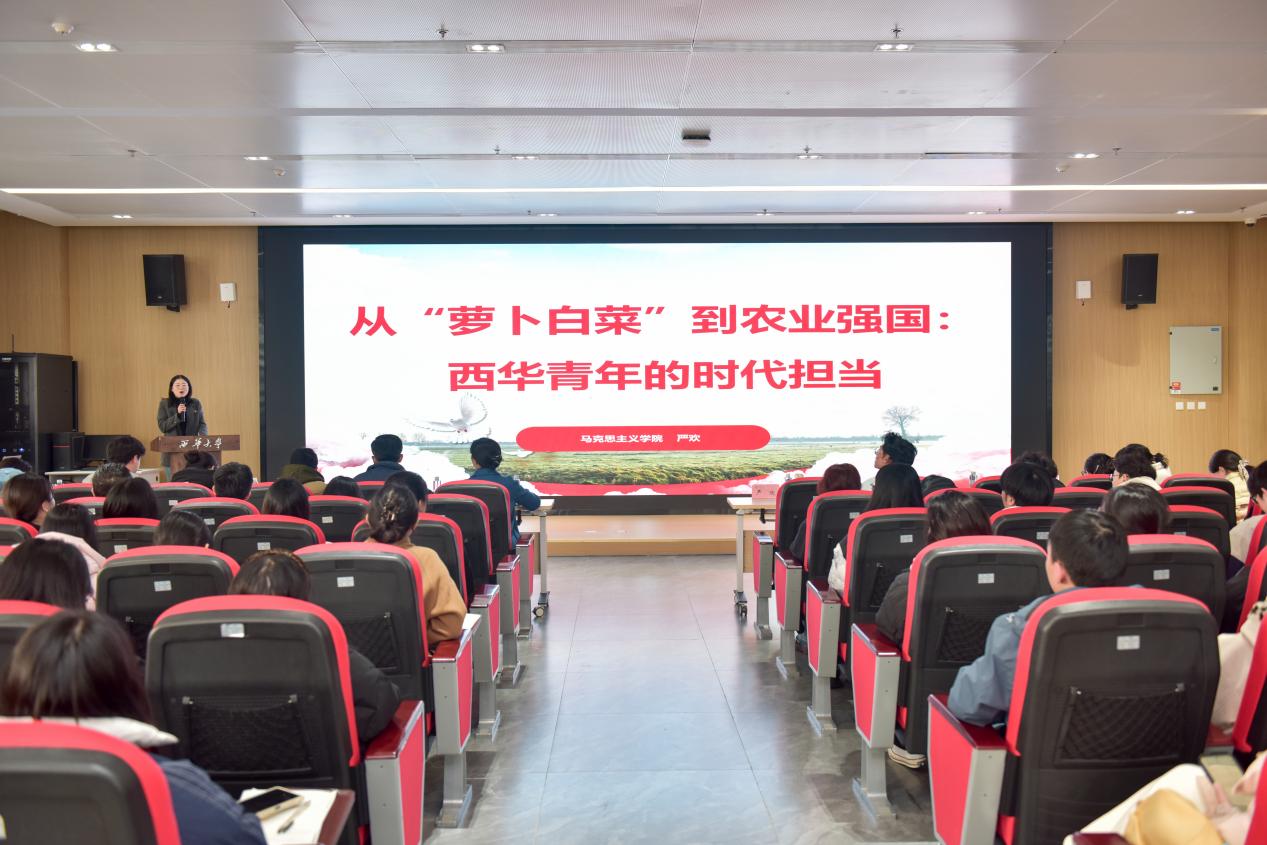 成都市优质团课主讲教师、马克思主义学院教师严欢作了题为《从“萝卜白菜”到农业强国:中国青年的时代担当》的主题团课。她以生动的案例、详实的数据,梳理了我国农业发展的辉煌历程,深刻阐释了新时代青年在乡村振兴、农业现代化建设中的责任与使命。她鼓励青年学子立足专业所长,扎根基层一线,将个人理想与国家需求紧密结合,在服务农业强国建设的实践中实现人生价值,让青春在奉献中绽放光彩。