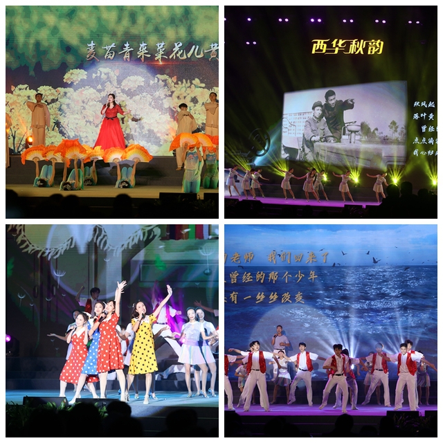 本次晚会共分为四个篇章:开天辟地、乘风破浪、青春力量、走向复兴。晚会在绚烂夺目的灯光秀中开始,五光十色的灯光照亮临江操场的夜空,也瞬间点燃了在场观众的热情。一艘红船,南湖启航,驶过百年时光。舞台情景剧《红船启航》带我们走回百年前先辈们开天辟地的峥嵘岁月。“麦苗青、菜花黄,梦里依稀是红光。”一首欢快高昂的《毛主席来到咱农庄》唱出了学校历史中那深深的红色印记,讲述了学校乘风破浪的建校历程。从《七律长征》到《我的未来不是梦》一句句气宇轩昂的歌词唱出了所有人对明天美好的憧憬,一张张坚毅的脸庞道出了所有人对自强不息的坚定。演绎体育舞蹈《青春力量》的同学们在舞台上身姿挺拔,展现着属于他们的青春力量。从《百年风华》到《共筑美好新时代》时间之河川流不息,复兴之路风华正茂。西华人用自己的方式献礼伟大的党,坚定在新征程上奋勇前行。