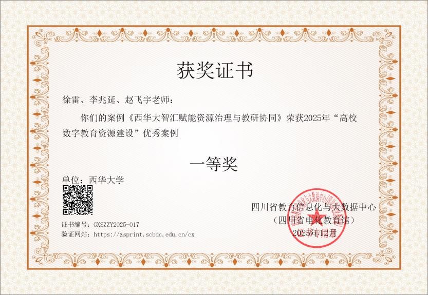 近日,由四川省教育信息化与大数据中心(四川省电化教育馆)组织开展的2025年“高校数字教育资源建设”优秀案例征集评选结果揭晓,西华大学凭借扎实的建设成果荣获一等奖、二等奖各1项,充分彰显了学校在信息化建设、教育数字化转型领域的显著成效。