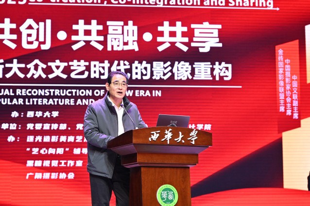 12月15日,中国文联副主席、中国摄影家协会主席、金砖国家影像联盟主席李舸走进西华大学,与师生面对面交流,围绕新大众文艺时代影像艺术的发展方向,作题为《共创·共融·共享——新大众文艺时代的影像重构》的专题讲座。党委常委、副校长费凌主持讲座,全校近600名师生到场聆听。