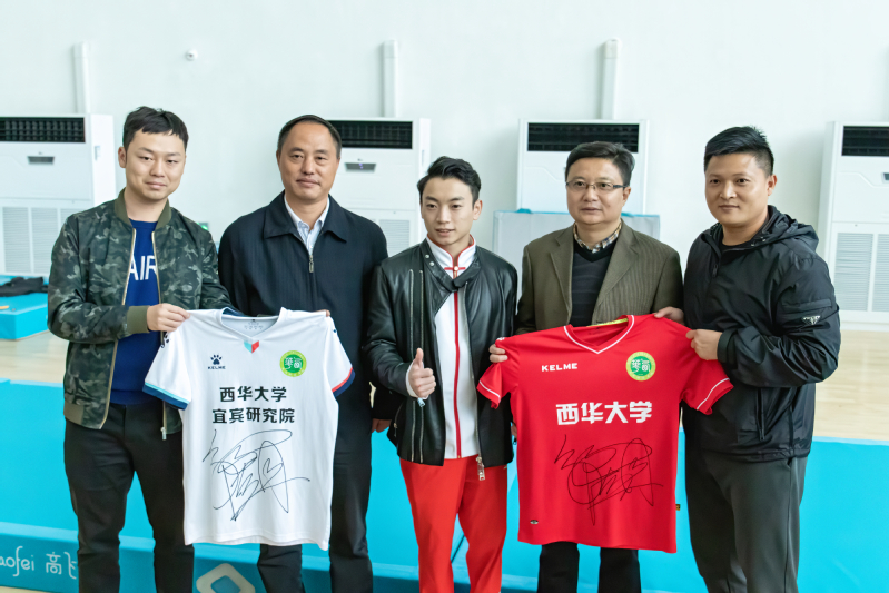 陆跃文对邹敬园一行的来访表示热烈欢迎。陆跃文指出,校区一直非常重视体育教育工作,鼓励学生走出教室、宿舍,走向运动场,积极参与体育运动。随后,陆跃文带领邹敬园一行参观了校区新建成的体育馆。邹敬园一行对宜宾校区的环境文化、校园建设、配套设施表示称赞。双方就校区体育方面工作进行了深入交流。交流中,李华提到社会办体育、竞技要发展,学校应该不断推进体育设施建设,发展全民运动的理念。参观结束后,校区邀请邹敬园在代表校区发展历程的运动服上签名并合影留念。