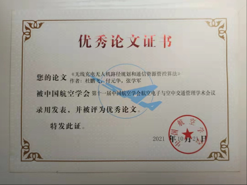 航空航天学院全体教职工、研究生和部分本科生参加此次会议,学院杜鹏飞、付元华和张学军撰写的《无线充电无人机路径规划和通信资源管控算法》被CCATM2021学术会议发表,并被评为优秀论文。随后,杜鹏飞作了以“面向低空复杂环境的无人机智能管控”为主题的学术报告。报告分享了城市物流无人机管控的研究现状和进展,指出了目前研究存在的挑战。针对此挑战,分享了学院在无人机感知避撞和路径规划方面取得的成果和未来展望。