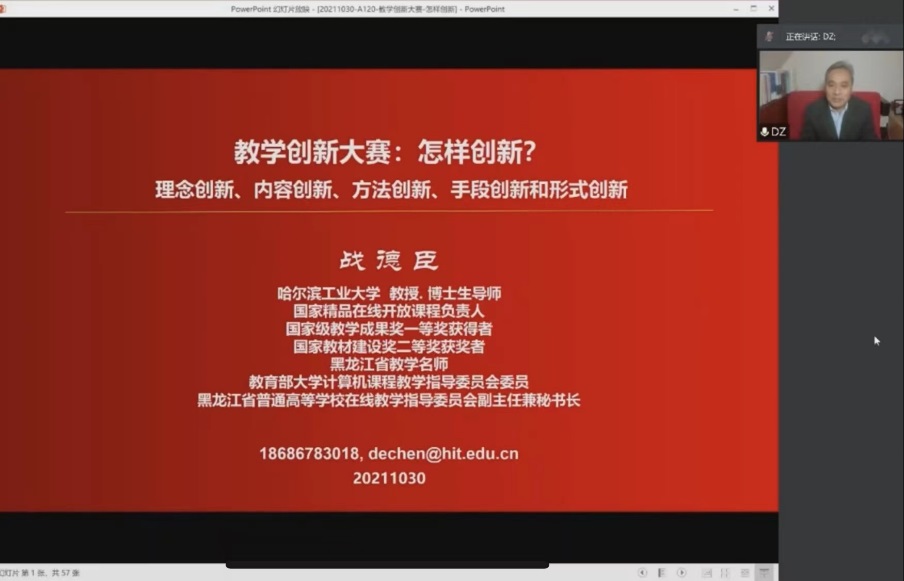 10月30日-11月2日,为助力教师探索教学新模式、提高教学创新设计能力和教学水平,有效备战第二届全国高校教师教学创新大赛,学校线上举办了“高校教师教学创新大赛系统化备战工作坊”,邀请来自哈尔滨工业大学的教授、东北石油大学的教学名师,以及获得2021年全国高校教师教学创新大赛一等奖的优秀教师分享赛事经验,全校19个学院的32位教师参加了本次工作坊。