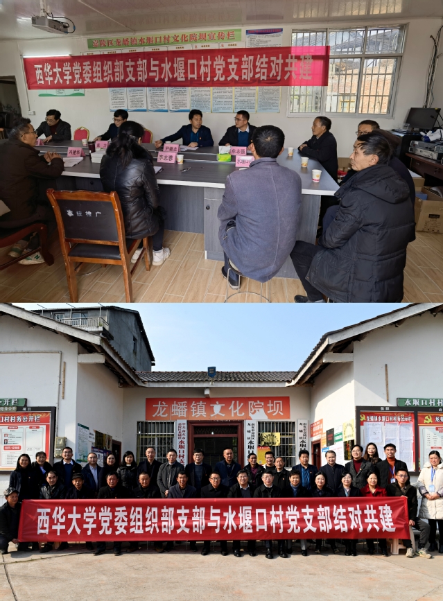 党委组织部支部与水堰口村党支部举行了支部结对共建活动,为建强村党支部建设,党委组织部赠送了党章、党徽、党旗以及学习书籍50多本。组织科周强从产业振兴、人才振兴、文化振兴、生态振兴及组织振兴五个方面简述了《乡村振兴促进法》,尹德志教授结合水堰口村茶桑产业发展过程中产能过剩、务工人员劳动风险等方面跟与水堰口村党员干部进行了热烈的讨论与交流。最后,党委组织部部长张力作了支部结对共建总结讲话。他希望驻村干部协助村党支部详细梳理水堰口村在乡村振兴方面存在的具体问题,协助做好水堰口村帮扶困难户与学校各党支部的结对共建,并邀请水堰口村致富带头人、党员骨干和村民代表到西华参观走访,共同探讨推进乡村振兴与学校学科、人才优势的结合。会后,学校一行向困难群众代表发放了棉被,送上暖冬慰问。
