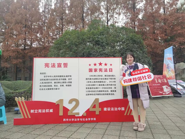 12月4日是第八个国家宪法日。今年“宪法宣传周”主题是“以习近平法治思想为指引 坚定不移走中国特色社会主义法治道路”。为深入贯彻落实党的十九大和十九届六中全会精神,普及宪法知识,树立宪法权威,营造普法氛围,西华大学组织开展了宪法晨读、升旗仪式、主题班会、知识竞赛、模拟法庭、普法宣讲等一系列具有仪式感的“宪法宣传周”和宪法进校园主题日活动。