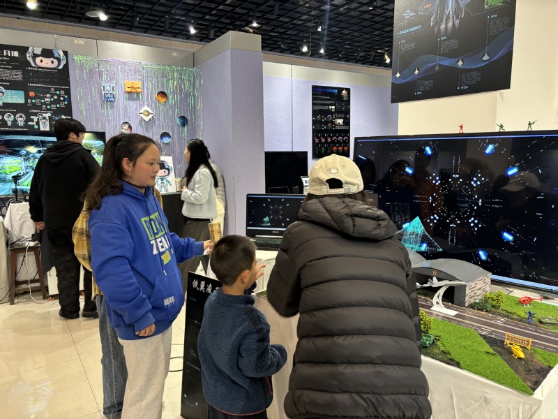 在美术与设计学院科普展区,学院师生以各种先进展示手段将农机装备、航空航天领域多个应用场景生动展现,引起观众的浓厚兴趣,当场促成部分企业和美设学院的合作意向。