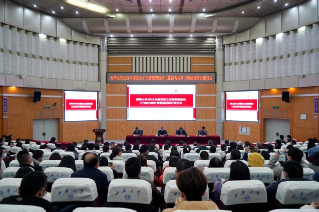 12月8日下午,西华大学2021年度党务工作暨思想政治工作能力提升专题培训班开班仪式在四教报告厅举行。校党委书记、党校校长余孝其,校党委副书记王政书出席开班仪式,相关职能部门负责人、专职组织员、教工党支部书记、教工宣传员、新媒体指导老师、党务干部参加开班仪式。开班仪式由王政书主持。