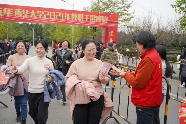 比赛结束后,许多教职工团队在活动板前拍照留念,学校还为教职工们发放了“康跑券”以兑换纪念品。本次教职工冬季健康跑活动,丰富了教职工们的业余生活;在提高教师身体素质的同时,展现了我校教职工的风采;营造了一个其乐融融、积极向上的幸福校园文化环境,增强了教职工队伍之间的凝聚力。在中国共产党成立100周年之际,全体西华人砥砺前行,向2022进发!