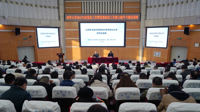 12月20日,西华大学2021年度党务工作暨思想政治工作能力提升专题培训班第三次培训在四教报告厅举行。本次培训的主题为“以百年党史引领新时代思想政治工作高质量发展”,邀请北京师范大学冯刚教授来校作专题报告。党务工作暨思想政治工作能力提升专题培训班全体学员参加培训。校党委常委、组织部部长、党校常务副校长张力主持培训。