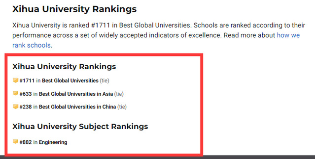 10月27日,US News(《美国新闻与世界报道》)发布最新的2022世界大学排行榜。今年的全球大学工科排名前1000名中,中国内地高校共有187所上榜,其中四川省共有8所。我校综合排名及工科排名均首次进入排行榜,工科排名位居四川第8名,全国第160名,全球第882名;学校综合排名位居四川第11名,全国第238名,亚洲第633名,全球第1711名。