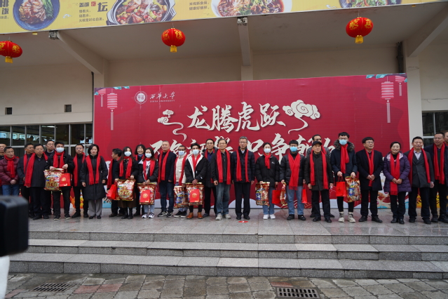 西华大学关工委领导、原四川工业学院党委副书记叶耀培教授向大家送上新春祝福。他勉励同学们不负时代,不负青春,不负韶华,既仰望星空,又脚踏实地,在完善自我的重要人生阶段,取得新的成绩,收获新的喜悦。