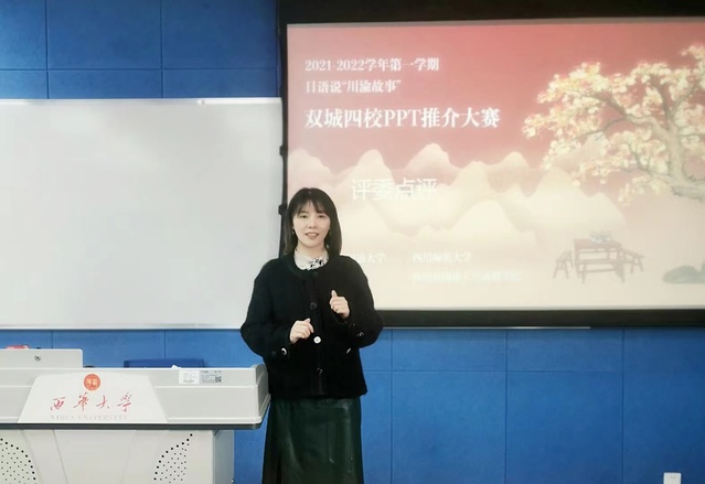 为进一步推进“新文科”建设,西华大学携手四川外国语大学、四川师范大学、以及四川外国语大学成都学院,强强联合,创新教研方式,共同建设“日语专业思政融合式课程群虚拟教研室”。作为虚拟教研室重要教研活动之一,四所高校于近日举办了“双城四校用日语讲川渝故事PPT推介大赛”,旨在深入推进课程思政改革创新,增强大学生文化自信,在提高学生日语能力的同时,进一步传播好中国声音和中国文化。
