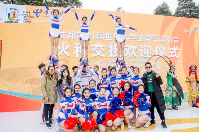 2月25日上午,在坚持疫情防控“外防输入,内防反弹”总策略、把疫情散发蔓延风险降到最小的要求下,成都第31届世界大学生夏季运动会火种交接欢迎仪式在金沙遗址博物馆举行。我校体育学院2018级体育表演专业学生李伊琳作为大学生代表参与火种交接,西华大学啦啦操队用精彩绝伦的表演展现了当代大学生活力四射的青春风采。