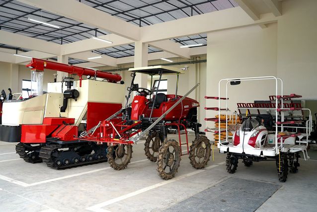 据悉,目前该项目各项工作进展顺利,无人农场机库已建成使用。“五良”融合无人农场机库的设计,是根据罗锡文院士提出的“机库田间转移作业全自动”的科学特点,在设计上集功能性、科教性于一体,兼顾了田间作业无人农机和植保无人机的工作特点,内部区块分为动力机具区、无动力机具区、控制室、储藏室、维修区等区块,外部为清洗区和转场区。屋顶采用低屏蔽的材料,能够保证卫星信号强度。同时,项目中所需稻麦生产装备已经全部到位,拖拉机、插秧机、植保无人机、高地隙喷雾机、稻麦收获机与运粮车、旋耕机、直播机和激光平地机应有尽有,这些设备将根据农业生产季节要求共同完成“耕、种、管、收”四个关键环节的作业。