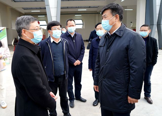 于立军一行观看无人农场机库
