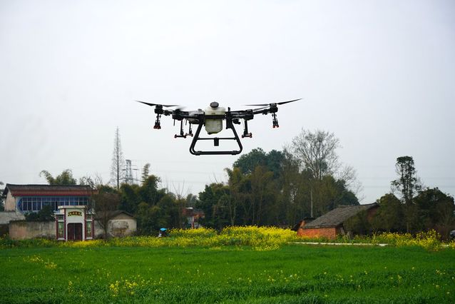 无人机为小麦喷洒农药和无人驾驶拖拉机
