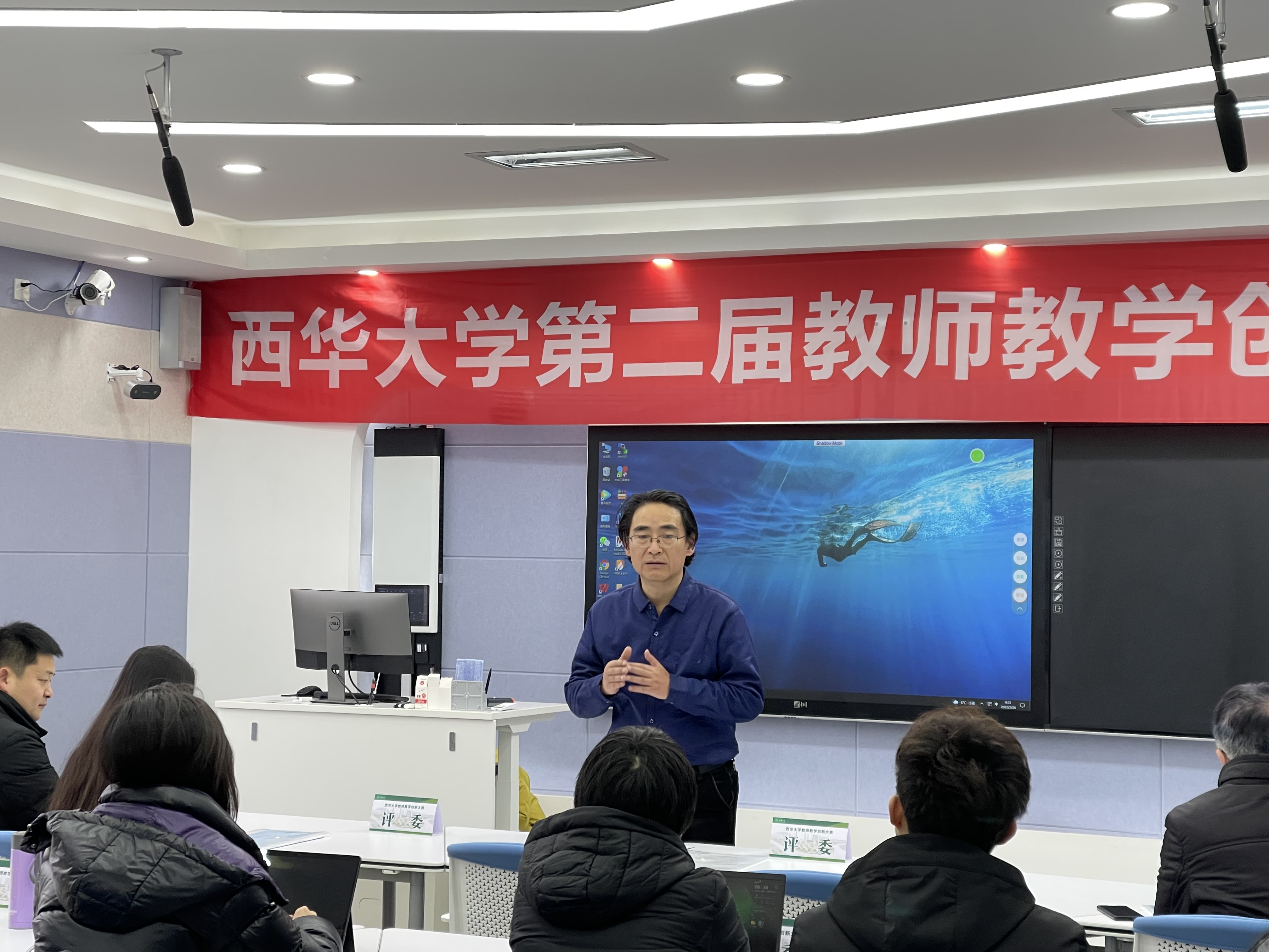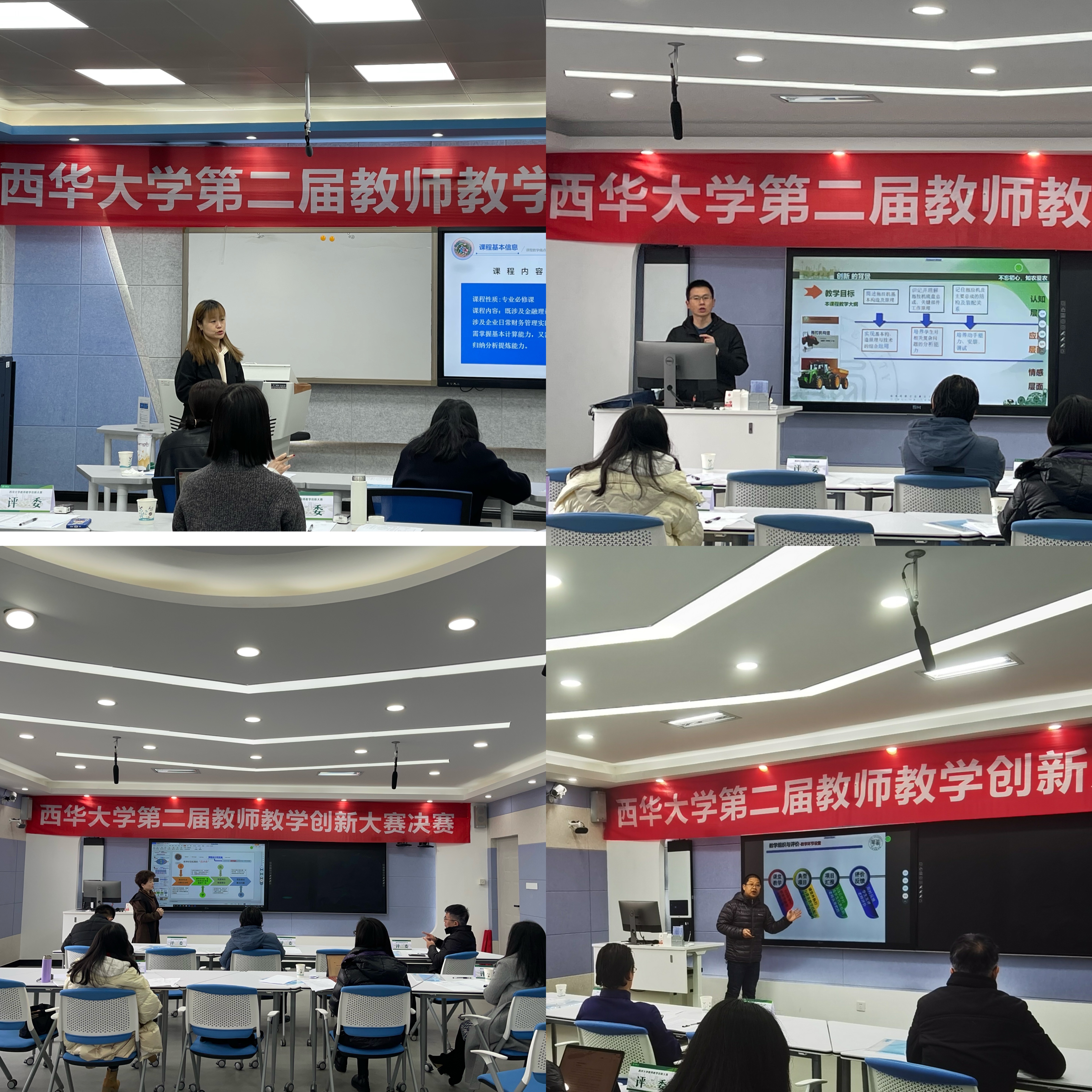 本次大赛于2021年12月启动,经教师(团队)申报、各学院遴选推荐,共有来自全校16个学院的27位教师(团队)参加了网络评审,经校内外评委审阅课堂教学实录视频、课程教学大纲、教学设计成果创新报告等参赛资料,其中15位教师(团队)入围现场评审决赛。参赛教师以真实教学问题为导向,结合教学大纲和教学实践,对课程设计理念与目标、教学内容、过程与方法、考评与反馈等进行了汇报,展示了创新的理念、能力和水平。专家评委根据提交的教学设计创新报告等参赛资料结合现场汇报答辩情况对参赛教师队伍进行全面评价,在教学内容设计、教学创新呈现、课程思政融入等方面提出了针对性的建议和改进方法。
