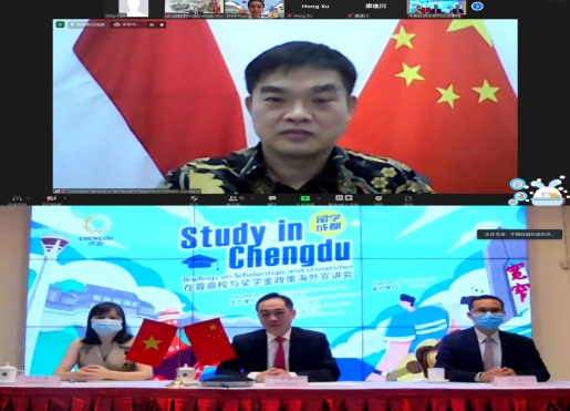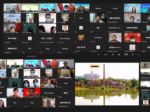 4月8日下午,由成都市人民政府外事办公室、成都市教育局会同中国驻泗水总领事馆、中国驻胡志明市总领事馆共同举办,西华大学承办的“留学成都——在蓉高校与奖学金政策海外宣讲会”(线上)在八教410会议室顺利举行。中国驻泗水总领事顾景奇,中国驻胡志明市总领事吴骏,成都市人民政府外事办公室主任姜斌、副主任欧玉松,成都市人民政府石斌总督学,西华大学副校长费凌教授出席宣讲会。