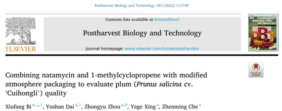 近日,食品与生物工程学院“果蔬保鲜与精深加工”团队毕秀芳副教授在Postharvest Biology and Technology(一区,IF:5.537)上发表题为“Combining natamycin and 1-methylcyclopropene with modified atmosphere packaging to evaluate plum (Prunus salicina cv.‘Cuihongli’) quality”的研究论文。