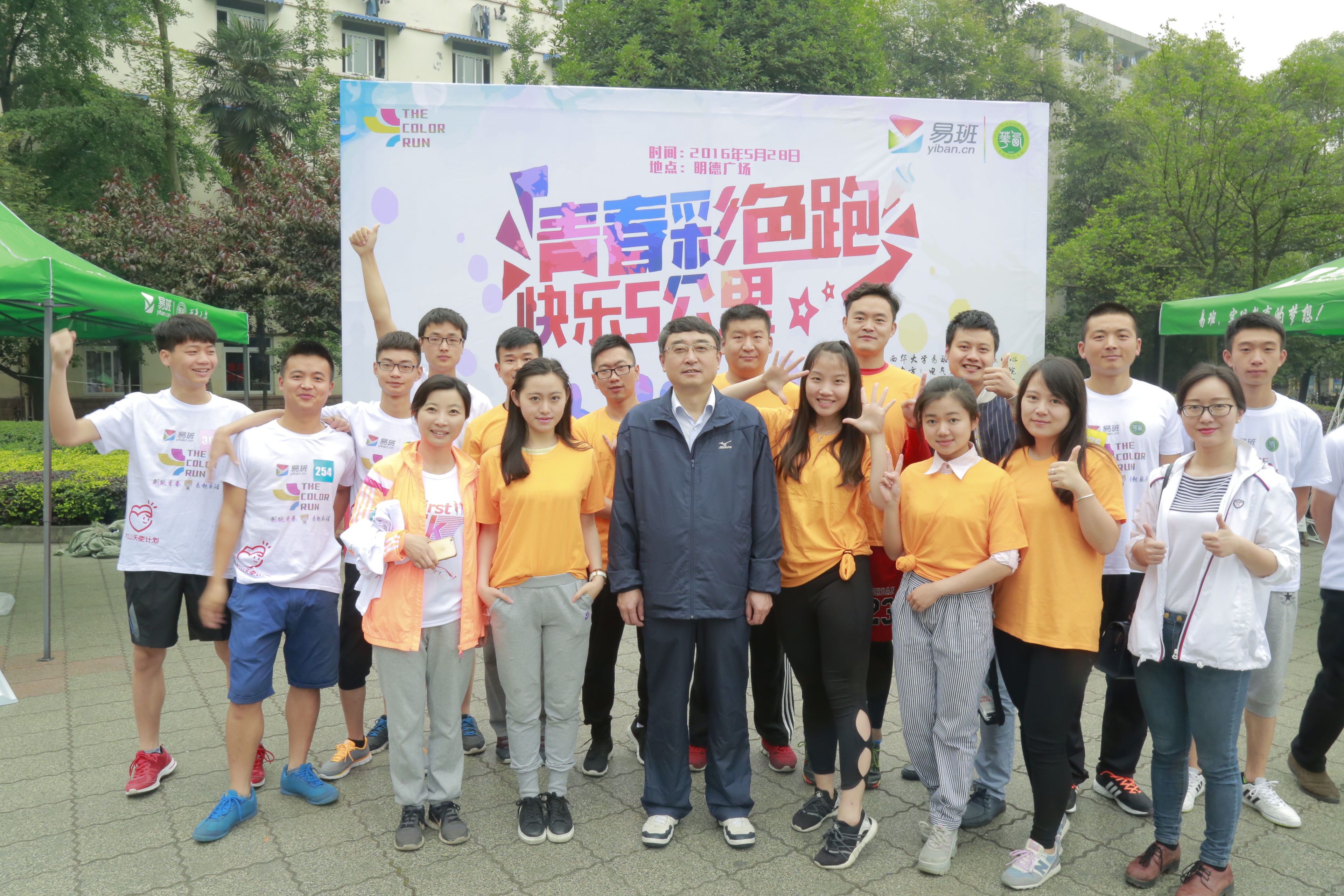 5月28日早上,明德广场飘扬的彩旗与一个个彩色的身影早早地打破了校园的宁静。以“多彩青春,易起活动,挑战你人生的第一个五公里”为主题的西华大学易班周年庆“THE COLOR RUN”(“彩虹跑”)活动如期举行。来自各学院各专业的400余名选手参跑,度过了一个不寻常的周末。