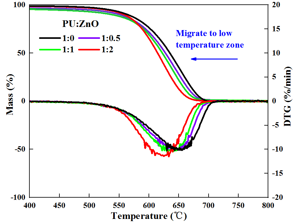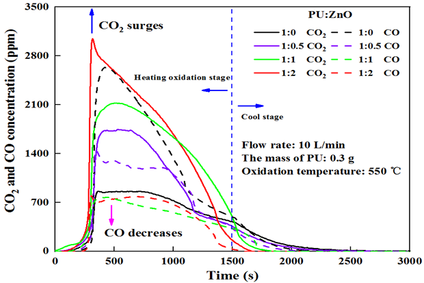 Figure 5. PU oxidation gas emissions at different ZnO ratios