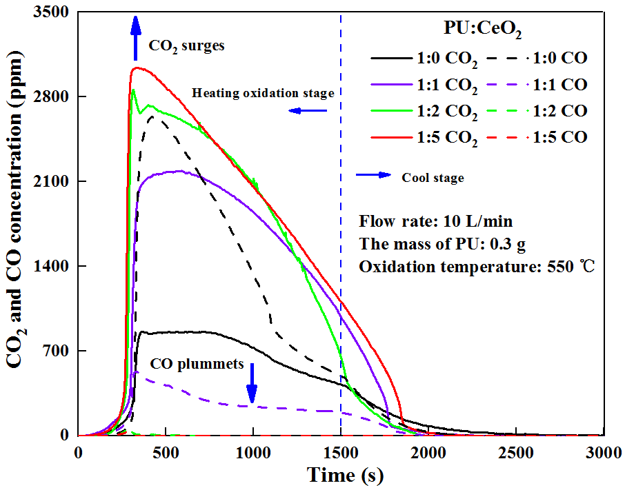 Figure 3. PU oxidation gas emissions at different CeO2 ratios