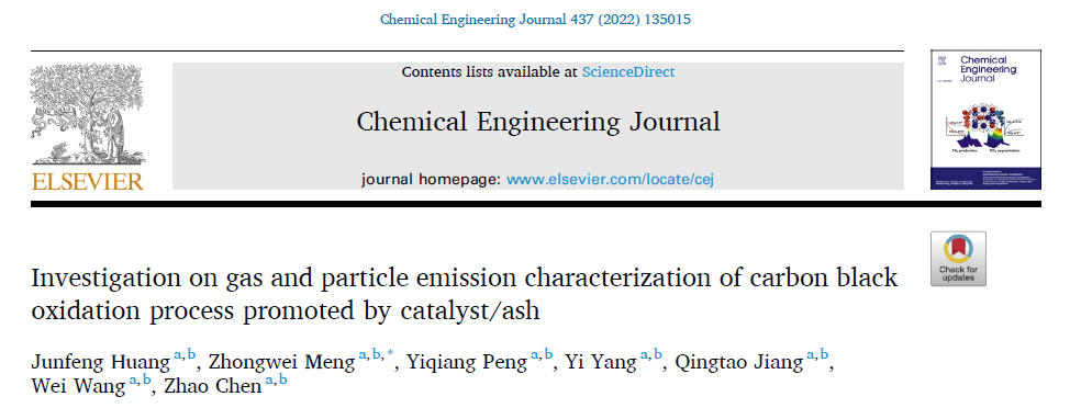 近日,汽车与交通学院孟忠伟教授团队研究生黄俊峰在Chemical Engineering Journal(一区,IF=13.273)上发表题为“Investigation on gas and particle emission characterization of carbon black oxidation process promoted by catalyst/ash”的研究论文。