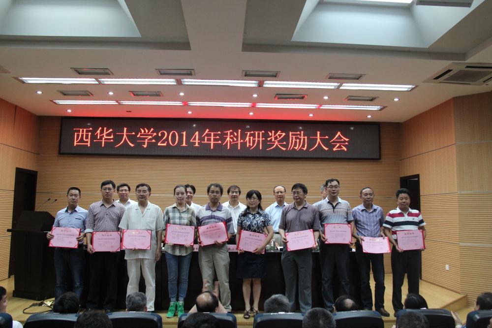7月10日下午,我校在行政楼一楼报告厅召开科研奖励大会。受到学校表彰的有:在2013年度荣获成都市以上科技进步奖的成果、专利、发表论文、著作、国家级项目以及学院到位科研经费超目标的有关单位和个人;西华大学第三次哲学社会科学优秀成果奖获得者。校党委书记张小南,校长孙卫国,副校长李劲松、乔哲青、王政书出席会议并颁奖。 李劲松副校长主持会议,并宣读了2013年度科研工作先进集体及先进个人名单。生物工程学院、电气信息学院、人文学院、管理学院获科研工作先进集体称号,裴峥、潘殊闲等20名教师获科研工作先进个人称号。 副校长乔哲青宣读了西华大学第三届哲社奖获奖名单。章道云等10名教师获一等奖,吴会蓉等20名教师获二等奖,石奎等30名教师获三等奖。 在校领导向科研工作先进集体和个人颁发获奖证书后,先进集体代表、生物工程学院副院长李玉锋,先进个人代表、管理学院副院长何东分别在会上作了交流发言。 李玉锋教授重点介绍了生物工程学院在学科建设与科研项目发展方面所作的努力与取得的成效。学院高度重视科研工作,着力打造学科、科研建设平台,积极拓展特色科研项目,鼓励支持教师到国内外开展学术交流,并积极与地方企业交流合作。 何东教授用“勤”“实”“合”“求”四个字分享了他在科研工作中的一些体会。“勤”,就是勤学习,勤跑动,不懒惰,在不断奔波中找寻机会;“实”,就是做实在事,作风实在,深入社会调查等;“合”,就是整合校内资源,探求项目合作机制,做到物尽其用;“求”,就是要在科研活动中,追求进步,以在服务地方经济建设中实现自我价值为乐。 最后,孙校长作了总结讲话。孙校长代表学校对受到学校表彰的团队和个人表示祝贺,并感谢大家为提升学校各项关键学术指标所作的努力与辛勤付出。他鼓励获奖教师继续发扬“知难而进,自强不息”的精神,在追求进步的道路上不断攻坚克难,希望“西华夜晚的实验室里灯火辉煌”,希望获奖教师发挥先进榜样作用,带动身边的同事,在人才培养、科学研究等方面做出更大更多的成绩。 据悉,按照《西华大学科技成果的若干奖励办法(试行)》和学校有关科技工作管理的规定,科技处对校内2013年度各单位科技工作情况进行了统计核算,经各单位反复核对,6月20日,学校印发了《关于公布第三次哲学社会科学优秀成果奖的通知》(西华科字〔2014〕5号)和《关于2013年度科研工作奖励的通知》(西华科字〔2014〕6号),对2013年度科研工作成效显著的有关单位和个人进行表彰奖励。 附1:西华大学2013年度科研工作先进集体和个人名单 一、先进集体: 1、年终考评自然科学类前2名: 生物工程学院、电气信息学院 2、年终考评人文社科类前2名: 人文学院、管理学院 二、2013年度科研工作先进个人: (一)、自然科学类先进个人(共11名) 1、到位科研经费先进个人: 裴峥、赖喜德、刘小兵、杜亚军、陈健、车振明、曾东建 2、发表论文先进个人: 李会东、樊群超、彭宏 3、成果获奖: 宋文武 (二)、人文社科类先进个人(共 9名): 1、到位科研经费先进个人: 潘殊闲、周佩、何东、章道云、刘薇、袁怀军 2、发表论文先进个人: 周睿、尹德志、张力
