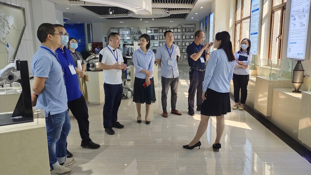 首先,中自科技公司企管部部长黄夕萍带领参访一行人参观了公司展览厅,详细介绍了该公司近年来的发展历程、科技创新和科研成果等。参观过程中,学院副院长孟忠伟、低碳动力系专业负责人田维、专任教师韩志强就国家尾气排放标准、氢能源产品开发等议题同该司员工进行了讨论。