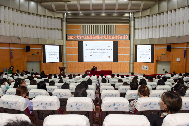 为全面落实团中央、团省委关于推动共青团促进大学生就业行动的工作要求,5月11日上午,校团委在四教报告厅召开了2022年大学生志愿服务西部计划志愿者招募宣讲会,校团委老师、学院团委书记、有意向参加西部计划的毕业生代表、青年志愿者代表共计200余人参加了此次宣讲。本次宣讲会邀请到了四川省青年志愿者服务中心干部、四川省大学生志愿服务西部计划项目办专员张幸为同学们进行宣讲。