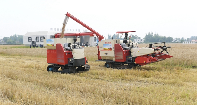 风吹麦浪,金黄的麦穗随风摇动。一台无人驾驶收割机在麦田中缓缓行驶,进行全程机械化收割。当粮仓装满后,无人驾驶收割机自动向运粮车发送信息。运粮车接到指令后立即行动,奔向无人驾驶收割机,伴随着轰鸣声,一粒粒饱满的小麦从机器里送了出来,行走收割、转弯掉头、仓满自动卸粮……在四川省首个“五良”融合无人农场,西华大学现代农业装备研究院的技术人员遥控指挥,完成了从小麦收割到脱粒装车的全过程,实现了整个收割卸粮无人化作业。