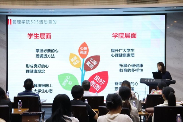 答辩伊始,李鹤向答辩评委和申报项目答辩人介绍了活动流程与评分规则。在本次“5.25”大学生心理健康主题教育宣传活动项目结申报答辩会中,共有来自23个学院的申报作品参与现场答辩,各学院项目负责人通过PPT对项目的研究背景、活动目的、活动内容、开展计划等进行了详细的陈述。
