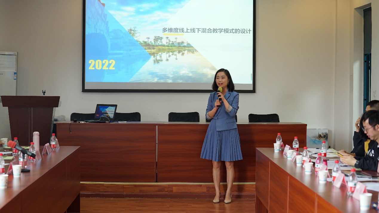 随后,五位分享者围绕混合式教学,结合自己的课程建设模式及成效、教学设计理念与实施等进行了主题分享。