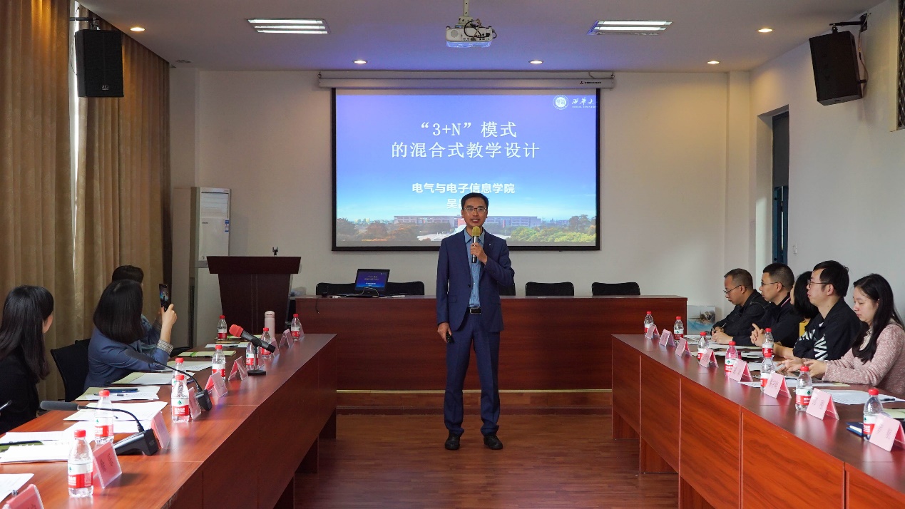 省级一流课程《模拟电子基础技术》和省级“课程思政”示范课程《模拟电子技术》负责人电气与电子信息学院教授吴昌东以专业课《模拟电子基础技术》为例做了《“三+N”模式的混合式教学设计》,详细介绍了其“线上有资源、过程有评估、线下有活动”的课堂教学改革及其成效。