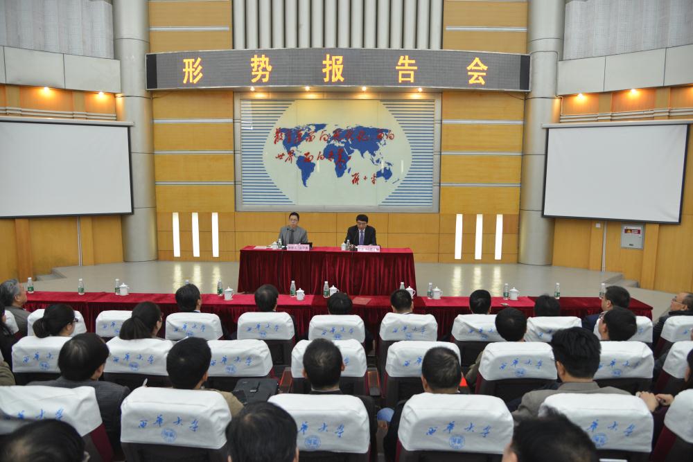 吕宁思,凤凰卫视资讯台执行总编辑,凤凰卫视资讯台副台长,著名时事评论员,从事媒体行业二十多年。10月13日,吕宁思从校长刘清友手中接过西华大学客座教授聘书后,在四教报告厅为全校师生开讲“从全球格局看价值观挑战”。学校全体党委常委、校级干部、党委委员、副处级以上中层干部,思政课教师、辅导员(班主任)及部分学生等300多名师生聆听了讲座。讲座由校党委副书记王小林主持。 经济自由化为中国成为世界大国提供了机会 “中国在寻求国力强大方面走了很多的路,现在踩了个很好的点,就是世界经济自由化的时代”。报告中,吕宁思以欧洲“第一次工业革命”为引题,回顾了洋务运动、文化大革命及改革开放等中国近代发展脉络。 吕宁思立足于国际形势的发展变化,从非政治层面解析了苏联的解体,并认为随着东西方冷战的结束,中美的建交,对中国发展是相当好的机遇。 他认为,当初用来规避贸易壁垒、束缚中国以寻求打入中国市场的WTO,现在中国却能得心应手应对并以其强大的产品竞争力及工业化产品打入了各国市场,目前已成为了世界第二大经济体,在全球化中受益颇多。改革开放的30多年,中国专注于发展,在国际大舞台上,中国遇上全所未有的大好时机。 中国必须考虑如何扮演大国的角色 观察世界发展的总趋势,离不开研究美国。引用朗西斯•福山的著作《历史的终结》的观点指出“历史在冷战结束之后转为资本时代,这个时代变成美国一家独大”,但现在美国开始衰落。美国不是没有继续世界老大的愿望,而是现在已经看出它的力不从心,力不从心不是因为它在全世界的管理智慧或战略不行,而是它的财力、国力支持。 “那么美国不掌控世界了,允许美国之外谁掌控世界,或者美国应该与谁一起掌控世界?美国研究的第一个对象就是中国。”吕宁思认为,在改革开放的30多年中,中国经济实现了跨越式发展,“所以,在世界局势方面,不是中国愿不愿意,也不是美国愿不愿意的问题,而是中国必须考虑将来在世界上如何来界定或扮演大国的角色。” 现在是什么时代? “现在是什么时代?”“这是一个最好也是最坏的年代,是一个快速也是忙碌的年代,是一个变革也是动荡的年代,是一个追逐也是烦躁的年代,是一个空前富足也是空前匮乏的年代。” 这是美国的全球霸权走向终结,新的世界格局正在形成当中,有关国家正在抓住机遇奠定自己在新世界的秩序当中的经济与政治地位的时候。 在报告中,吕宁思分析说:“目前,世界发展局势呈现出大西洋经济板块、美国经济板块、东亚经济板块三足鼎力之势。如果中国能在东亚地区做个地区大,能够掌握地区的政治、经济、外交,这对未来中国的发展相当有好处。” “当经济自由化、市场化30年后,世界进入一个转折点,全世界的经济是回到贸易保护还是继续开放?”为了遏制中国的迅猛发展,目前美国正在经历一个巨大的转向——从自由贸易转向规则贸易,通过推出《跨太平洋战略经济伙伴关系协定》(TPP)及《跨大西洋贸易与投资伙伴关系协定》(TTIP)等期望塑造新的贸易体系来束缚中国,从而掌握世界贸易规则制定的主导权。然而,美国新贸易规则所倡导的提高劳动条件和伦理、人权等等标准,无疑在很大程度上将提高中国企业的成本支出。 从全球经济链看,硅谷创新获得了30%,华尔街金融获取了30%,德国装备(产品质量、专利)占据了30%而中国制造业仅仅占有10%。目前,中国自主创业不够,代加工利润低,“如何提高中国产品自身的竞争力,创造新的比较优势,是中国企业未来必须面临的重大挑战”。 大国的崛起需要什么? “一个大国的崛起必须占领道德的制高点,这样才能打败对手,进而引领全球。因此中国的崛起,不仅要赢得军事上和经济上的较量,也要赢得道德文明上的较量。其中的关键是,是否有一套使人足以幸福、足以自豪的价值观,并以此来凝聚国民的共识”。吕宁思向与会者推荐了张东才的《道德战争:现代中国在价值观上的挑战》著作,并结合本书内容用一种科学和开放的态度,深入探讨了一连串与价值观相关的问题,包括价值观与社会发展的关系、不同的历史阶段会重视不同的价值观、价值观的社会基础。 那么“怎么样的价值观才能配合世界发展的大趋势?我们需要发展一套怎么样的价值观来配合中国的发展等”,吕宁思提出了自己的思考。 报告上,吕宁思倡导中国文化要主动走出去,在接纳西方道德体系存在性的基础上,努力把自己修炼成与世界有共同语言、与世界文化道德有共鸣的价值体系。 与凤凰学院新闻专业学生交流:做自己想做的 另悉,报告会前,吕宁思与凤凰学院新闻专业学生作了交流。“你一定要知道你是谁,你想做什么和能做什么!”小时候,吕宁思的母亲告诉他:“你以后想做什么?或许你将来可以到苏联去,做一个外交家啊。”正是这样的一种成长环境,让吕宁思发现世界很大。 进入媒体行业,他认为是一种机遇。他曾在《解放军报》做过临时记者。有一次随老师采访朱建华破世界纪录的新闻。“当时我就发觉,我做这个事情还可以。因为我文笔好,笔头快,而且还能最大限度发挥我的长处。” 吕宁思告诉学生:“你一定要认识到你是谁,你自己想做什么。你的理想可能是自己先天萌发的,也可能是后天外界影响你的。但是你自己一定要确信,你选择的职业是你自己