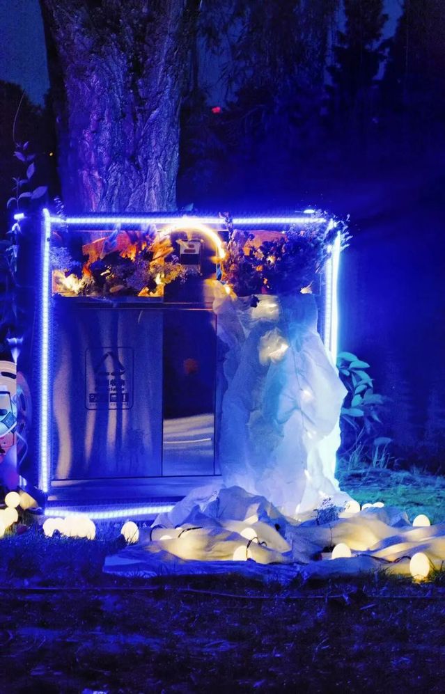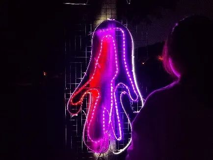 此次光影艺术节共展出2020级艺术与科技专业15组光影艺术装置作品。作品以声光电的结合为主带给观众全新的沉浸式艺术体验,分为“西华记忆”“光影猎奇”“时空探索”三个章节。在西华记忆板块里,创作小组尝试用固有的西华校园景观,结合了“时钟”“防疫”等时代元素,唤起同学们对国家时事、西华校园回忆的别样体验。在光影猎奇板块中,创作者希望通过干冰、霓虹灯、投影设备等丰富的光影交互方式,让大家感受到新材料和新媒介所带来的奇妙体验。而时空探索板块,创作者利用冰块、Led光等形象呈现出对时空,人性以及哲学的探索思考。作品风格多样,为同学们课余生活增添了纷纷艺术乐趣。