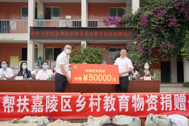 当天,余孝其一行来到龙蟠镇中学,了解师生生活学习状态。现场举行了西华大学定点帮扶嘉陵区教育物资捐赠仪式,学校根据龙蟠镇乡村教育实际需求,积极发挥校友资源作用,联系汤旭东校友向该校捐赠了学习用品、体育用品和办公用品等价值5万元的教育物资,用于改善龙蟠中学办学条件,为学生成长发展营造良好环境。