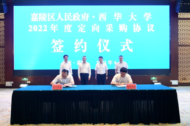 在随后举行的嘉陵区政府与西华大学战略合作框架协议暨2022年度定向采购协议签约仪式上,双方先后签订了2022年度定向采购协议和战略合作框架协议。根据协议,学校计划2022年度采购南充市嘉陵区农副产品160万元,双方将在丘陵地区轻便农机具应用及推广、食品加工、文化赋能乡村振兴、人才培养、成果推广、咨询服务等方面,扩大合作范围和合作内容,提升合作价值,更好地体现高等学校承担的投身乡村振兴事业的光荣使命和服务地方经济社会发展的社会责任。
