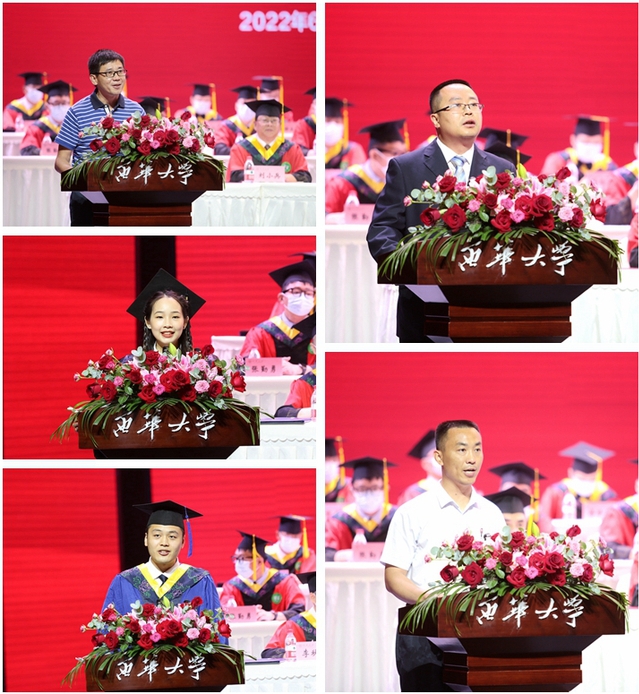 “今天开始,你们将从西华这个温暖的集体走向充满挑战的人生,挑起时代的脊梁。母校将永远注视着你们前行的脚步,做最坚实的后盾、最深情的后方,为你们的成长进步加油喝彩。” 校党委书记余孝其指出,当前中华民族伟大复兴进入关键时期,中国人民正意气风发向着全面建成社会主义现代化强国的第二个百年奋斗目标迈进。正值青春,生逢盛世,何其有幸。他勉励青年学子们接过前辈薪火,肩负起时代赋予的责任与使命,牢记母校的期望和嘱托,发扬“知难而进、自强不息”的西华精神,恪守“求是、明德、卓越”的校训,不负时代,不负韶华,在青春的赛道上奋勇争先,跑出西华人的风采。