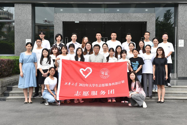 座谈会上,张力为2022年大学生志愿服务西部计划志愿服务团授旗,志愿者庄重宣誓。最后,学校领导、相关部门负责同志和西部计划志愿者合影留念。