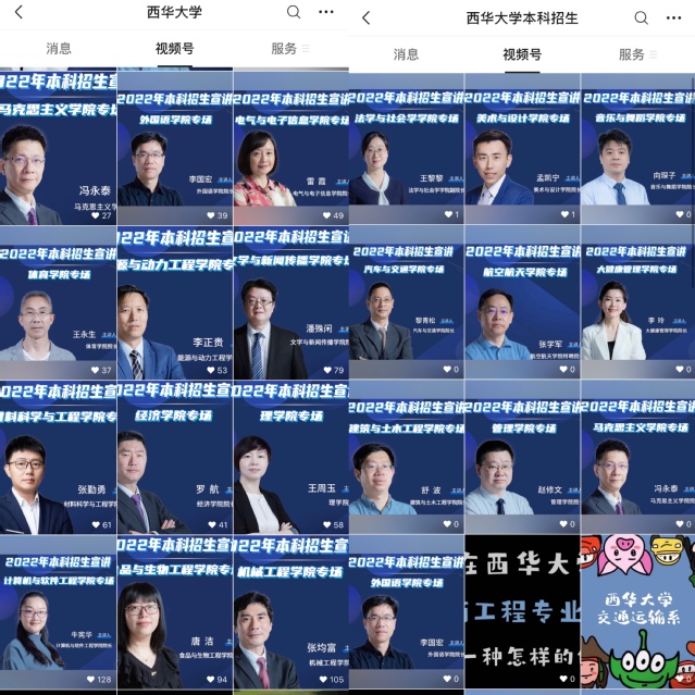 学校微信公众号影响力持续提升。西华大学官方微信、西华大学本科招生微信两个公众号通力合作,在招生宣传季陆续发布学校各类宣传视频及招生政策、招生宣传活动安排等系列主题推送40余个,各学院官方微信号也推出招生宣传视频及学院介绍,全面直观地介绍了学院专业的师资队伍、学生活动和教学科研成果等内容,为关注学院专业发展和有意报考的考生提供了全方位的信息服务。
