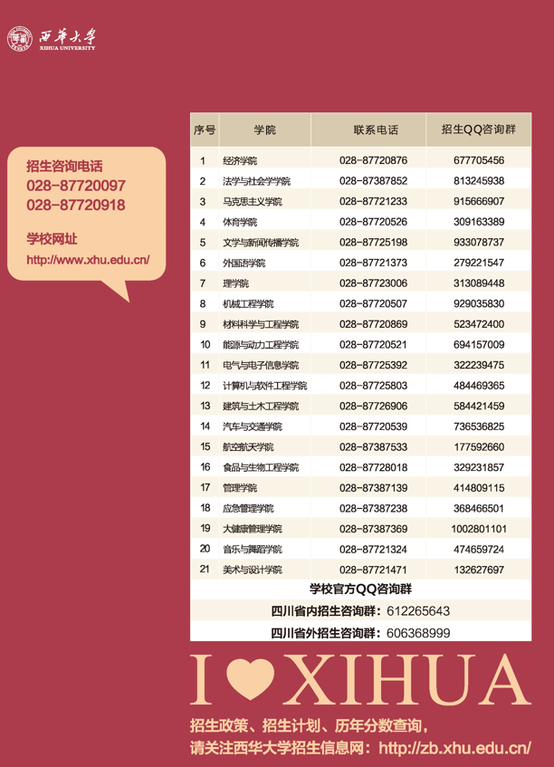 各学院招生电话、QQ咨询群