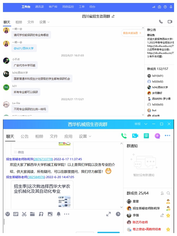 此外,咨询以学校及各学院招生QQ咨询群、学院官微、学院二级网站为主,线下咨询以学校招生咨询电话、参加各地市州招生巡展为主。为做好此次线上招生宣传咨询工作,招生与就业处开设了招生咨询专用电话室,开通8个电话热线方便考生咨询,并组织各学院师生从6月9日开始进行集中电话咨询,为考生解答学校招生政策、专业信息、报考建议、分数参考等问题。各学院也开设了专门的招生咨询电话,并安排专人值守,热心为考生答疑解惑,共同做好招生咨询工作。