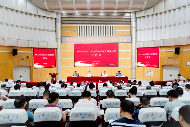 6月24日,西华大学2022年度处级干部专题读书班开班式暨第一讲在四教报告厅举行。校党委书记余孝其,校党委副书记、校长刘树根,校党委副书记、纪委书记朱燕萍,校党委副书记张力及全体中层领导干部参会。刘树根主持开班式。