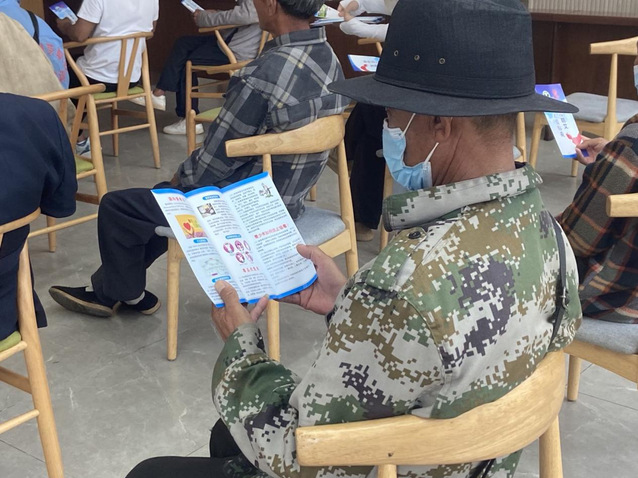 当地群众仔细阅读禁毒防艾宣传册