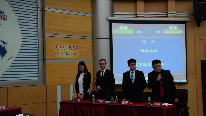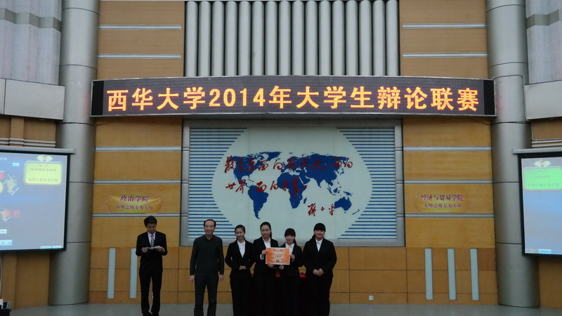 读书百万,可造雄辩之才,雄辩可敌百万兵。4月17日晚6:30,我校2014年校辩论联赛决赛在四教报告厅上演。经过两个小时的激烈角逐,最终政治学院获得冠军,经济与贸易学院和外国语学院分获二,三名。建筑与土木工程学院、交通与汽车工程学院获道德风尚奖,数学与计算机学院、政治学院、人文学院获优秀组织奖。陈虹光、庾一、常丽茹等8名同学获得最佳辩手。 本次辩论联赛历时一个多月,共进行了31场比赛,共有来自全校的21支学院参赛队伍参赛。 有无的探讨,哲学的思辨 进入冠军赛的两支队伍分别是政治学院辩论队和经济与贸易学院辩论队。作为正方的政治学院的辩题是“有用之用方为大用”,反方经济与贸易学院的辩题是“无用之用方为大用”,双方围绕这个辩题展开了激烈的论战。 政治学院从“有用之用方为大用”的“有”字入手,通过列举高校专业设置等例子来论证“无用之用方为大用”这个观点已是过去式,随着时代的发展“有用之用方为大用”才是主流思想。经贸学院紧抓政治学院的重点,从反面来论证“有用之用”的功利性,他们认为“有用之用”会让人在追逐名利的路上迷失自我,而“无用之用”方才是真正的“大用”。正方慷慨激昂,反方理性思辨,这场辩论打得不分伯仲。尤其是在最精彩的自由辩论环节中,双方争锋相对,步步紧逼,现场气氛迅速升温,达到白热化阶段。总结陈词环节中正反方辩手清晰的思路和巧妙的陈词给观众留下了深刻的印象。最终,政治学院辩论队以微弱的优势取得了的胜利,成为了本年度辩论联赛的冠军队伍。经贸学院紧随其后夺得第二。 冠军赛之前的季军赛在外国语学院和管理学院中展开。这两支队伍围绕“大学教育是否应该以市场为主导”展开辩论。他们运用辩证严密的思维方式,考量大学教育和市场需求的关系,探讨了大学教育的纯净度和市场需求的重要性,将大学学习、教育的目的提升到了一个新的高度。 值得一提的是决赛中的一场精彩绝伦的表演赛。远道而来的成都信息工程学院代表队和西华大学代表队在决赛中展开了一场精彩的辩论,他们的辩题是“明星是否应该表里如一”。这是一个大家都很感兴趣的话题,双方代表队不仅仅局限于谈明星的表现,更将“表里如一”上升到另外一个层次,融入进我们的生活中。在自由辩论环节中,成都信息工程学院的三辩妙语连珠,惹得现场观众一阵又一阵的掌声和笑声。 评委寄语 “有用之用方为大用、无用之用方为大用,这个辩题没有一点勇气是不敢辩的,没有很强的实力,是辩不好的。”点评嘉宾凤凰学院党总支书记兼副院长陈召平老师说道。 本届辩论联赛邀请了多位资历颇深的评委老师对每场比赛进行公证专业的裁决。在辩手们唇枪舌战、你来我往之时,评委老师们也仔细认真地观察着每支队伍的表现,在辩论赛后,也对选手们的表现作出了非常专业的精彩点评。评委们谈到,辩论赛就是在锻炼同学们的思辨思维,提高同学们表达能力和应变能力。 精彩的比赛不仅打动了评委,也给现场观众留下了深刻的印象。管理学院的陈映龙同学说:“通过观看辩论赛,让我们对社会很多问题都有了全新的认识和思考。选手在辩论的同时我也在思考,这样不仅台上的人得到了锻炼,台下的每一个观众也都有所收获。”