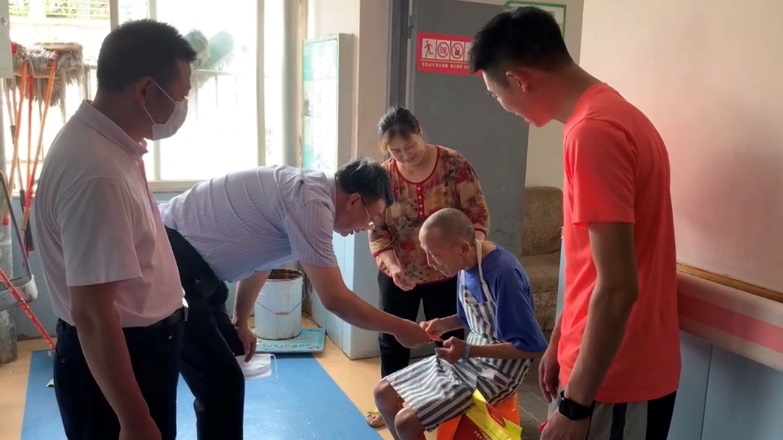 在中共南充市嘉陵区龙蟠镇副书记、南充市嘉陵区龙蟠镇水堰口村党支部第一书记、驻村工作队队长雷云中的带领下,许州前往南充东江医院看望结对帮扶对象张在元,详细了解其家庭情况、身体状况、子女就业以及目前遇到的困难等情况,为其发放了慰问金和日常生活用品。