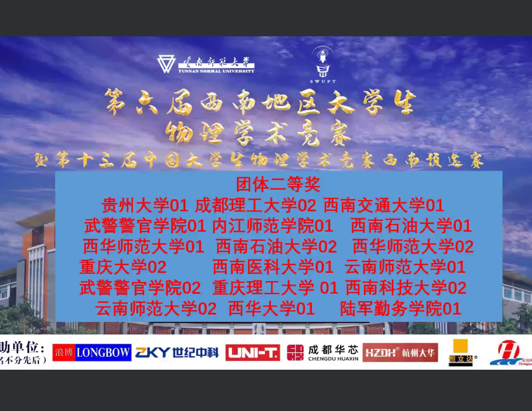 7月18日,第六届西南地区大学生物理学术竞赛(简称SWUPT)暨第十三届中国大学生物理学术竞赛(简称CUPT)西南预选赛开幕。受疫情影响,本次竞赛以“腾讯会议”网络竞赛直播方式在线上举行,理学院学子经过多轮角逐,荣获团体二等奖。
